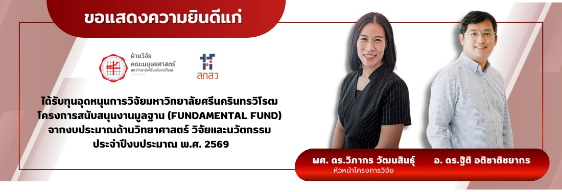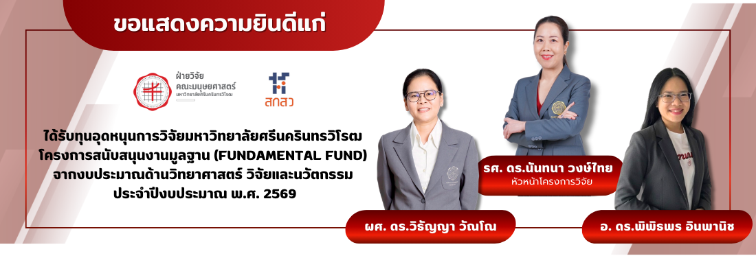 ประกาศเปิดรับสมัครทุนอุดหนุนวิจัยงบประมาณรายจ่ายจากเงินรายได้คณะมนุษยศาสตร์ ประจำปีงบประมาณ พ.ศ. 2569 รอบที่ 1 - 2 ประกาศรายชื่อผู้ได้รับทุนอุดหนุนโครงการวิจัย จากเงินรายได้คณะมนุษยศาสตร์ ประจำปีงบประมาณ พ.ศ. 2568 รอบที่ 2 ประกาศรายชื่อผู้ได้รับทุนอุดหนุนโครงการวิจัย จากเงินรายได้คณะมนุษยศาสตร์ ประจำปีงบประมาณ พ.ศ. 2568 รอบที่ 1 ประกาศเปิดรับสมัครทุนอุดหนุนวิจัยงบประมาณรายจ่ายจากเงินรายได้คณะมนุษยศาสตร์ ประจำปีงบประมาณ พ.ศ. 2568 รอบที่ 1 - 2 ประกาศรายชื่อผู้ได้รับทุนอุดหนุนโครงการวิจัย จากเงินรายได้คณะมนุษยศาสตร์ ประจำปีงบประมาณ พ.ศ. 2567 รอบที่ 2 ประกาศรายชื่อผู้ได้รับทุนอุดหนุนโครงการวิจัย จากเงินรายได้คณะมนุษยศาสตร์ ประจำปีงบประมาณ พ.ศ. 2567 รอบที่ 1 ประกาศเปิดรับสมัครทุนอุดหนุนวิจัย งบประมาณรายจ่ายจากเงินรายได้ คณะมนุษยศาสตร์ ประจำปีงบประมาณ พ.ศ. 2567 รอบที่ 1 - 3 ประกาศรายชื่อผู้ได้รับทุนอุดหนุนโครงการวิจัย จากเงินรายได้คณะมนุษยศาสตร์ ประจำปีงบประมาณ พ.ศ. 2566 รอบที่ 3 ประกาศรายชื่อผู้ได้รับทุนอุดหนุนโครงการวิจัย จากเงินรายได้คณะมนุษยศาสตร์ ประจำปีงบประมาณ พ.ศ. 2566 รอบที่ 2 ประกาศรายชื่อผู้ได้รับทุนอุดหนุนโครงการวิจัย จากเงินรายได้คณะมนุษยศาสตร์ ประจำปีงบประมาณ พ.ศ. 2566 รอบที่ 1 ประกาศเปิดรับสมัครทุนอุดหนุนวิจัย งบประมาณรายจ่ายจากเงินรายได้คณะมนุษยศาสตร์ ประจำปีงบประมาณ พ.ศ. 2566 รอบที่ 1 - 3